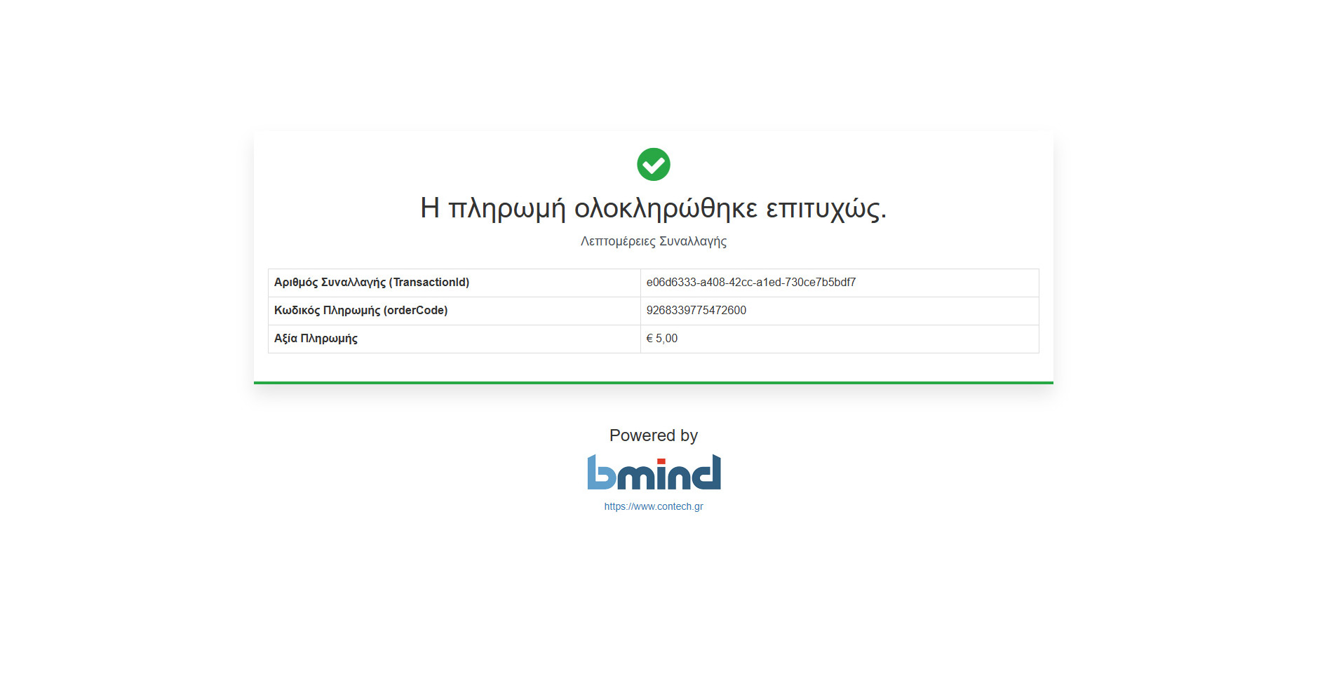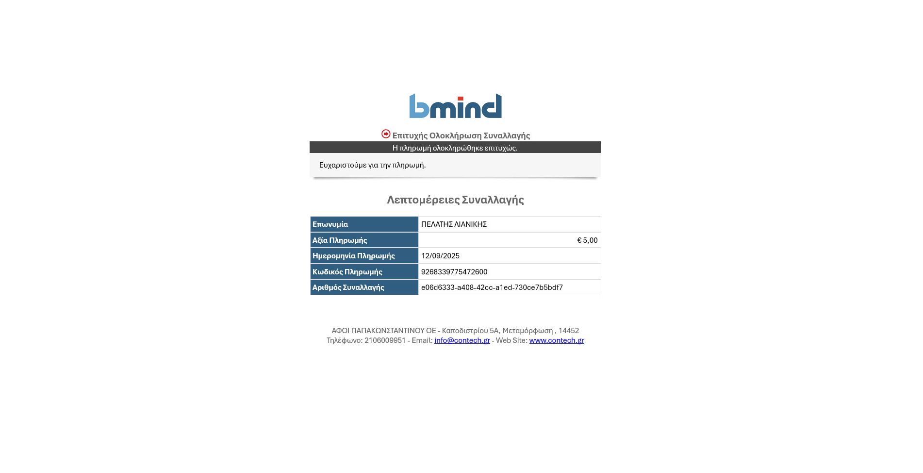 done Αυτόματη καταχώρηση είσπραξης στο bmind όταν η πληρωμή ολοκληρωθεί επιτυχώς.